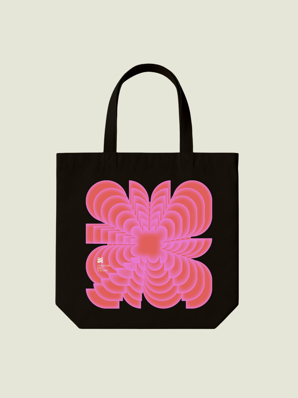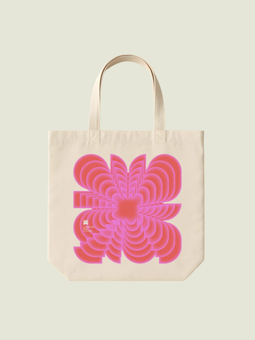 Tutustu tuotteisiinVuoden 2024 Jyväskylän Kesän kangaskassi. Grafiikan on suunnitellut Tero Ahonen.