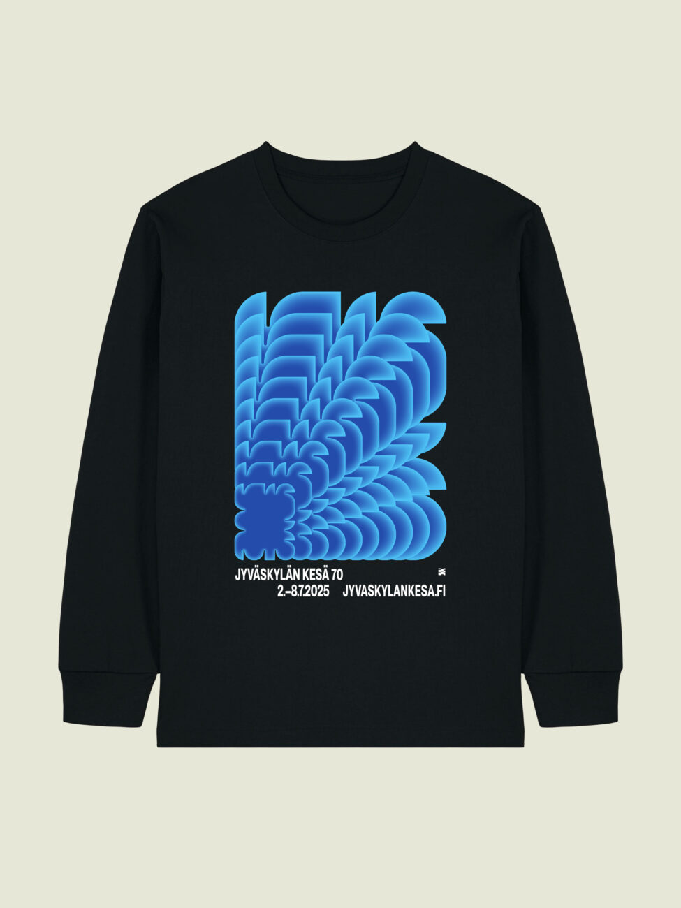 Tutustu tuotteisiinVuoden 2025 Jyväskylän Kesän festaripaita. Grafiikan on suunnitellut Tero Ahonen. Painatus on paidan etupuolella.